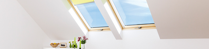 Mogelijke binnenzonwering bij dit dakraam: jaloezie, rolgordijn, rolgordijn met zijgeleiding, verduisterend rolgordijn, geplisseerd rolgordijn en de honeycomb plissé.